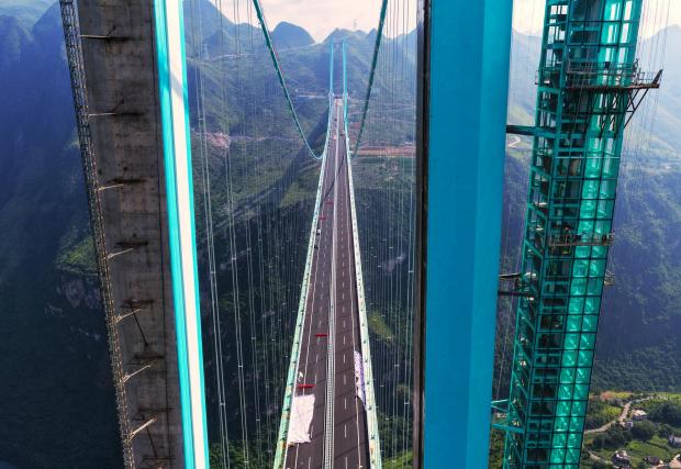 Най-високият мост в света беше открит в провинция Гуейджоу в югозападната част на Китай. Мостът “Хуадзян каньон” се издига на височина 625 метра над река Бейпан. За сравнение това е пет пъти по-високо от виадукта Бебреш на магистрала “Хемус”, който се издига на 120 метра височина. Дължината на китайския мост е 2890 метра, като конструкцията тежи 22 000 тона. Изграждането му е отнело едва 3 години. Благодарение на моста пътуването от едната страна на речния каньон до другата вече не отнема 2 часа, а само 2 минути.