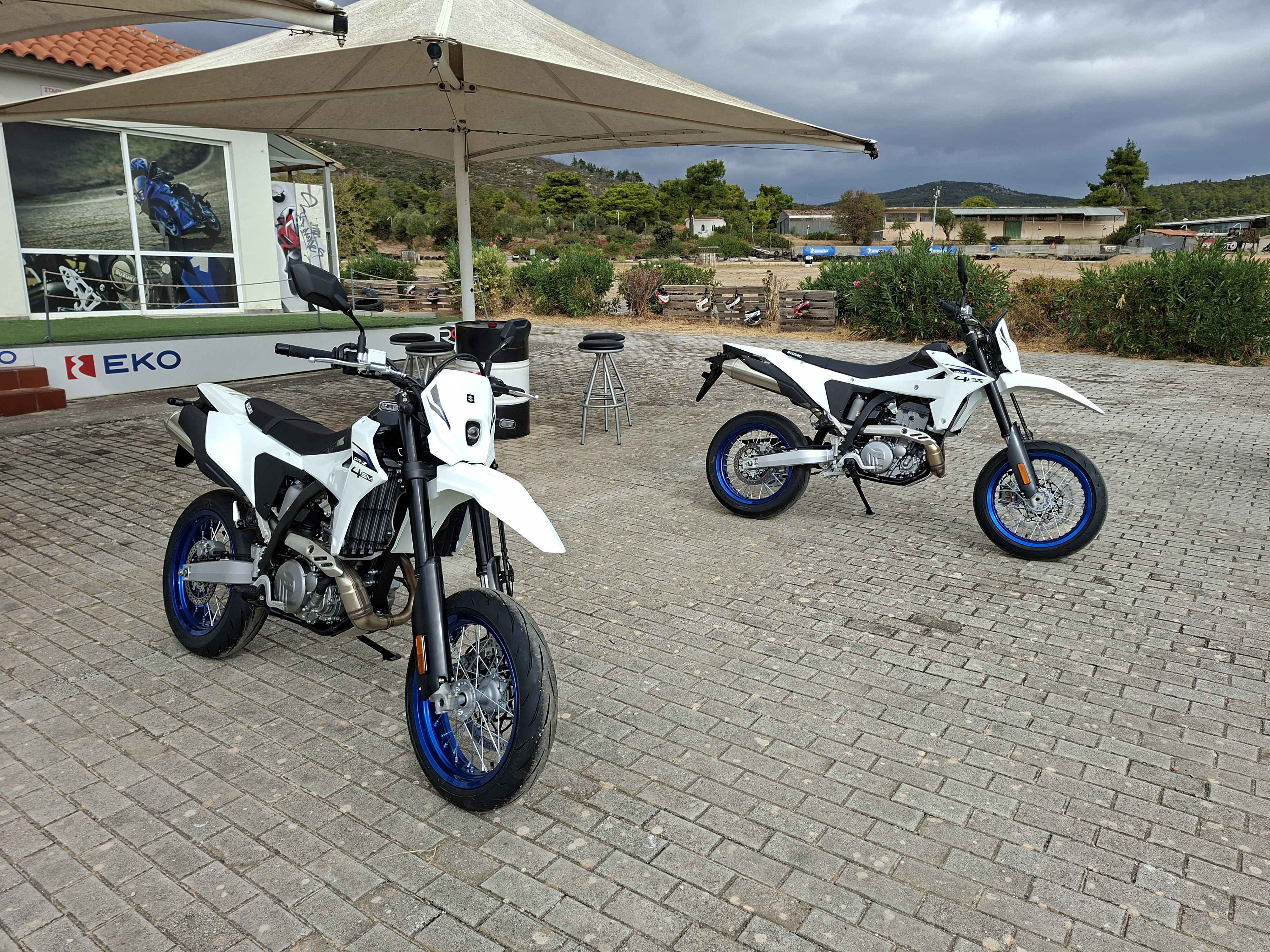 След като навъртяхме първите километри на ендуро версията дойде ред и за супермотото. И тук имате избор между два цвята. Първият е чисто бяло, комбинрано с брутални сини спицови капли Excel. Вторият е небесно синьо, при който джантите са черни.