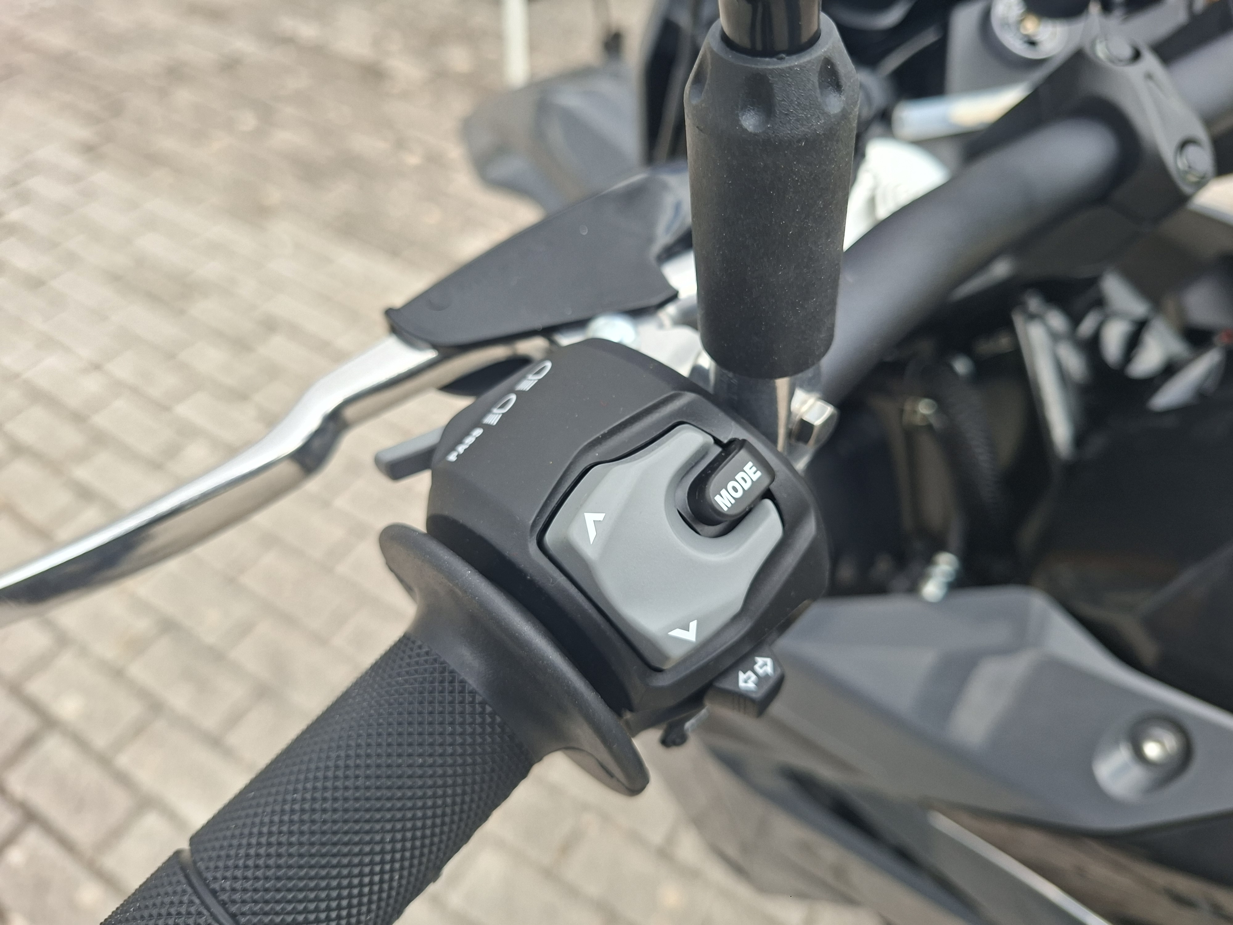 Изброените по-горе режими на двигателя и нивата на контрол на сцеплението, включително Gravel, са налични и за супермотото. Управлявате ги от трите бутона на лявата ръкохватка.