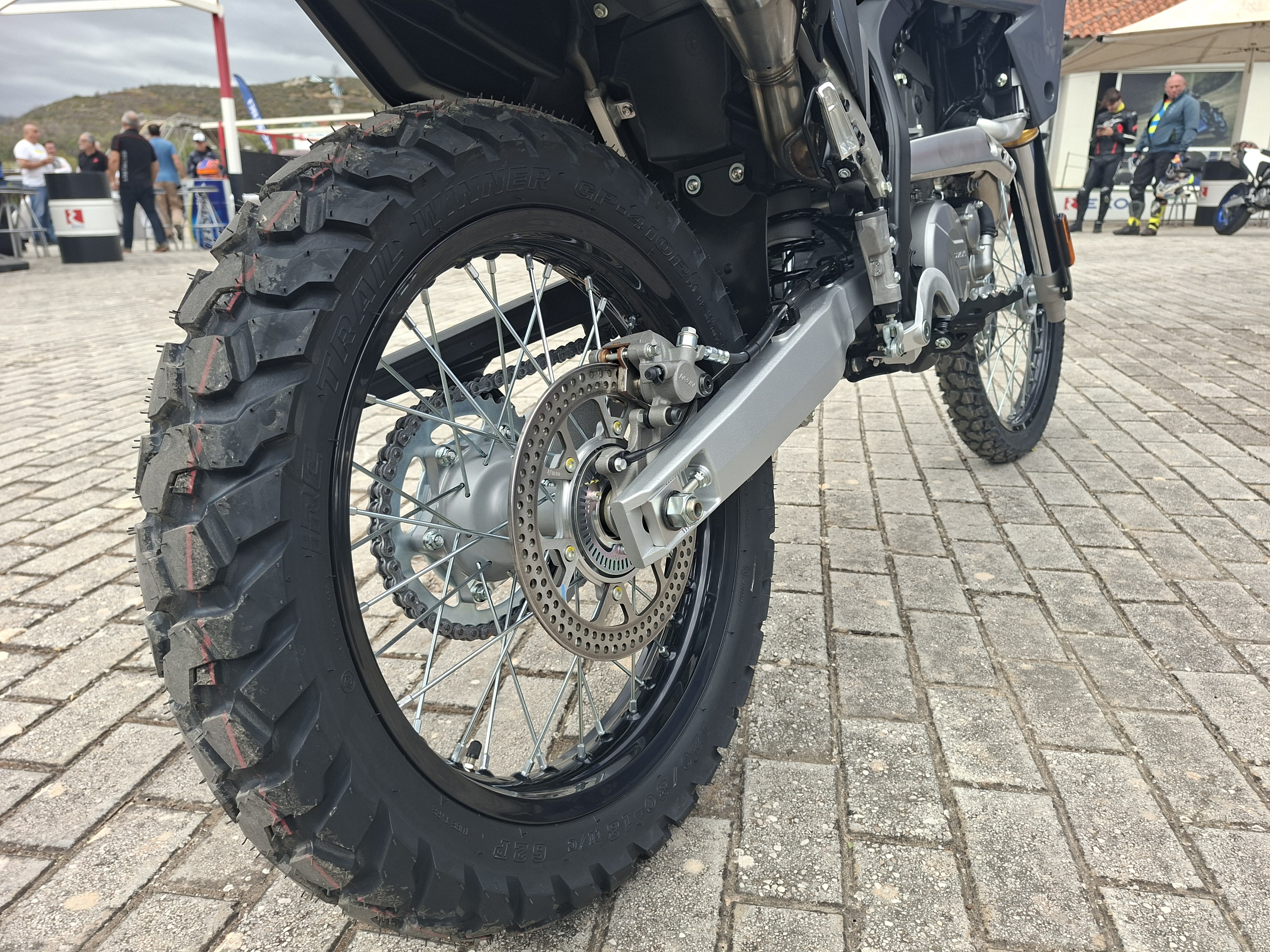 След презентацията се качихме да караме ендуро версията. Моделът се предлага в две разцветки – класическа жълтo/бяло и изцяло сива. Подобно на своя предшественик размерът на гумите е запазен при новия модел – отпред е с размери 80/100-21, а отзад - 120/80-18.