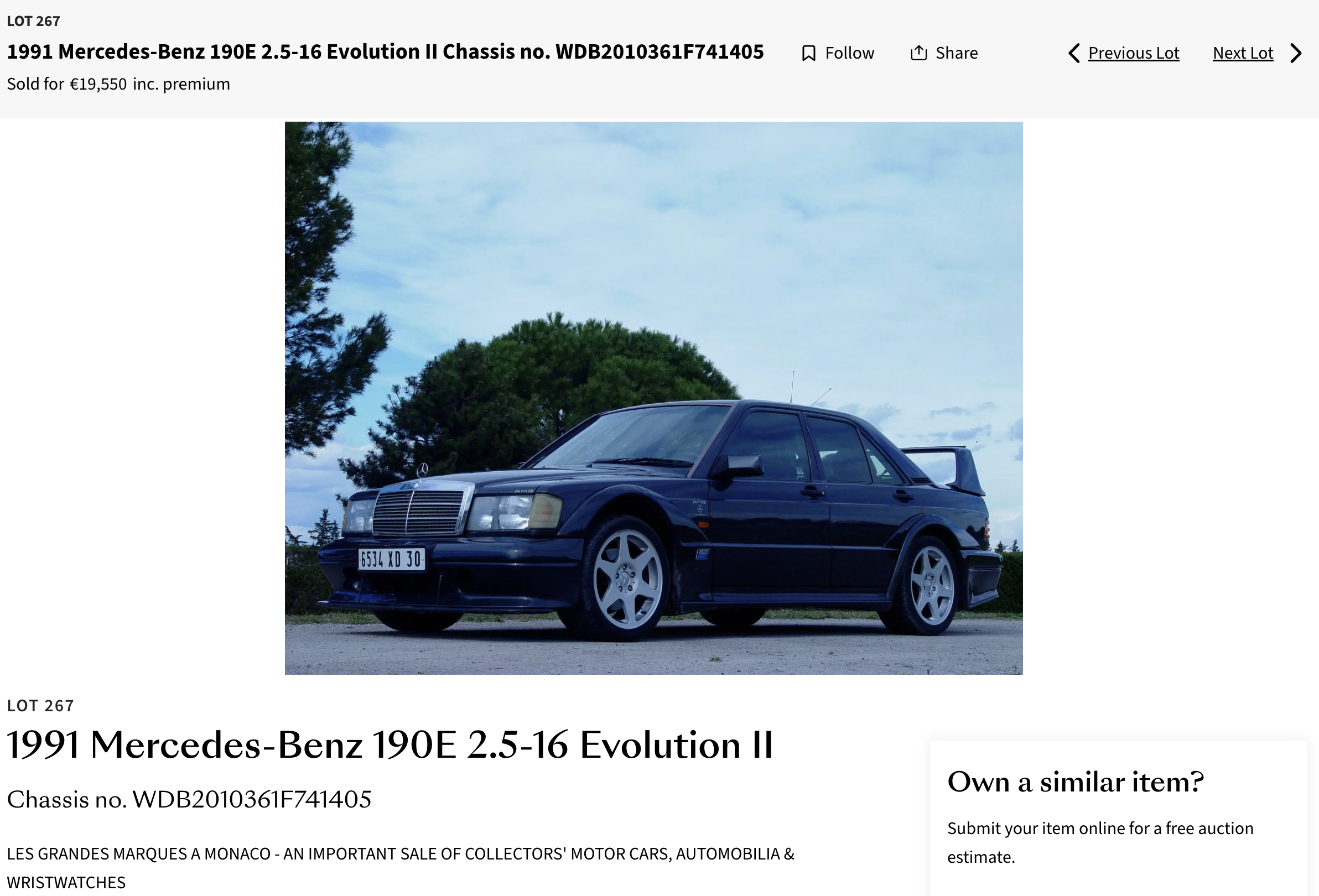 325 000 евро. Леле. Това са точно 16,62 пъти повече пари от тези, за които е успял да я вземе по-предишния ѝ собственик. Но, предвид пробега, състоянието и другите предложения на пазара, цената явно е оправдана. Справка в mobile.de показва, че се продават само шест 190 EVO II-ки, едва две от които във вид подобен на тази.