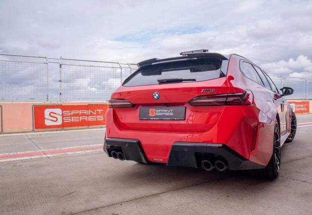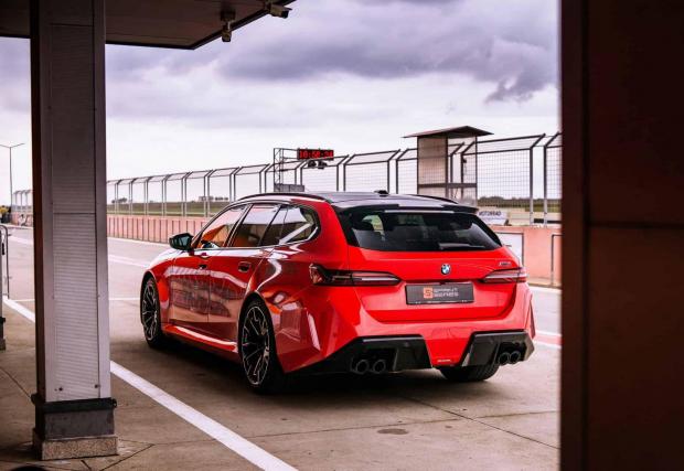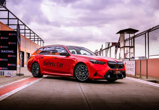 Освен в MotoGP, новото M5 комби вече е кола за сигурност и в съседна Румъния. G99 изглежда страхотно в тази роля, особено в този цвят Rosso Corsa от програмата BMW Individual.