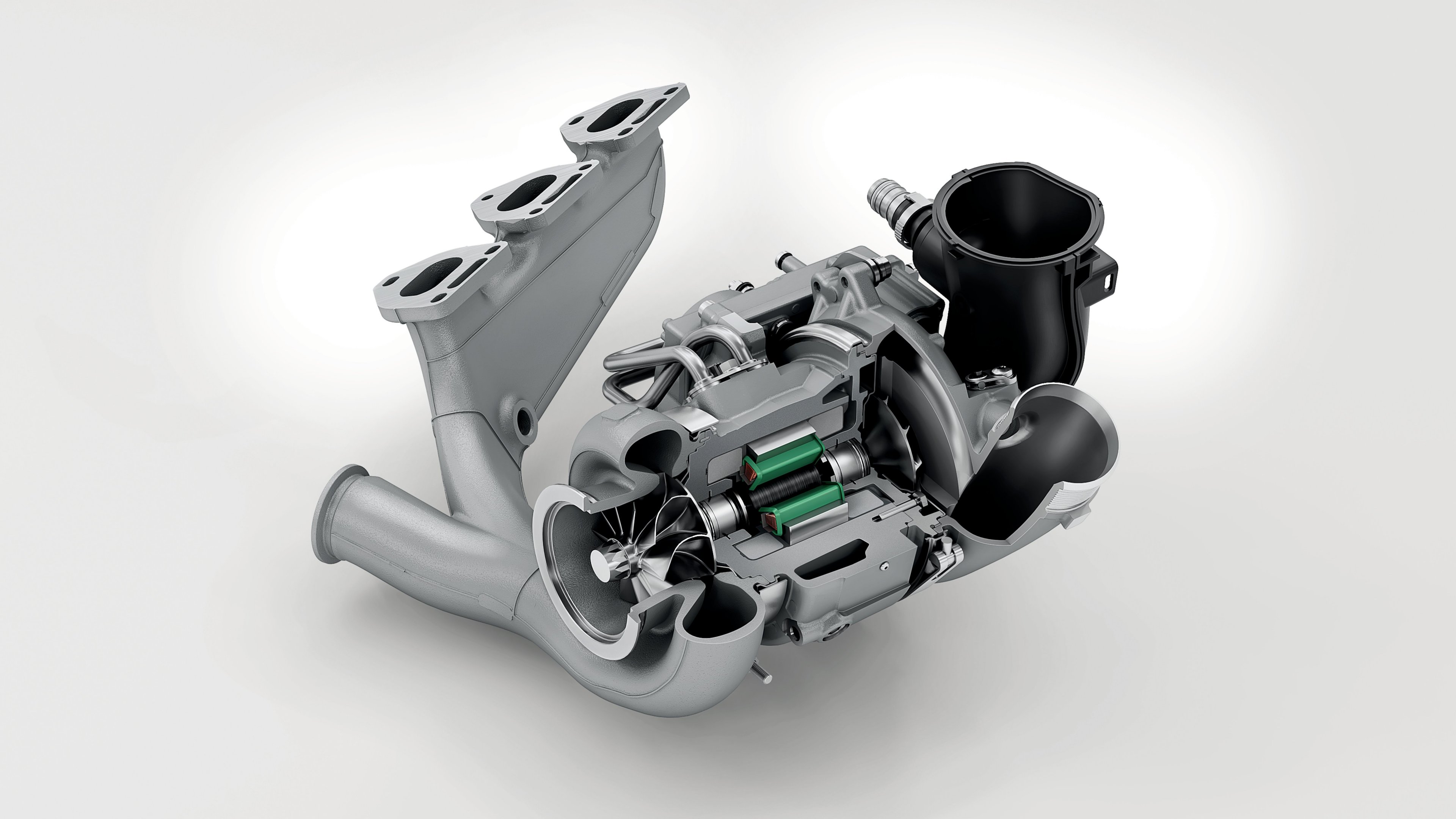 Затова при шестцилиндровите боксерни мотори на моделите Turbo конструкторите прибягват към друго решение – пълнене с два турбокомпресора с променлива геометрия. Подобни агрегати се използват масово при дизеловите двигатели, но в тях температурата на газовете е много по-ниска от тази при бензиновите. „Когато разработвахме агрегата заедно с компанията BorgWarner (която ще стане доставчик и на новите електрически турбокомпресори), опитахме да монтираме на двигателя турбини от дизелов двигател. Издържаха по две три минути преди насочващите лопатки да се стопят“, спомня си Хофщетер. Екипът не се отказва и група инженери заминава за Щатите, а инженерите от NASA се съгласяват да предоставят на Porsche технология са създаване на термоустойчиви никелови сплави. Именно такива се използват и до ден днешен при лопатките насочващи газовете към турбините при версиите Turbo на Porsche, а доскоро и на Turbo S, който вече разчита на въпросната система с електрически подпомагани турбокомпресори. При даунсайзинга всички агрегати при 911, 718 Boxster и 718 Cayman преминават към принудително пълнене, но VNT (VGT) турбокомпресорите си остават запазена територия само за Turbo. С преминаването към четирицилиндрови турбо мотори за 718, при които не се използват две турбини се създават нови проблеми, а за версията S на Boxster и Cayman се използва един VNT турбокомпресор. Двигателят 1.5 TSI (EA 221 EVO) на колегите от VW, който също използва VNT турбокомпресор работи с много по-ниска температура на отработилите газове (поради по-ниското натоварване и използването на цикъла на Милър, при който се снижава температурата на газовете).