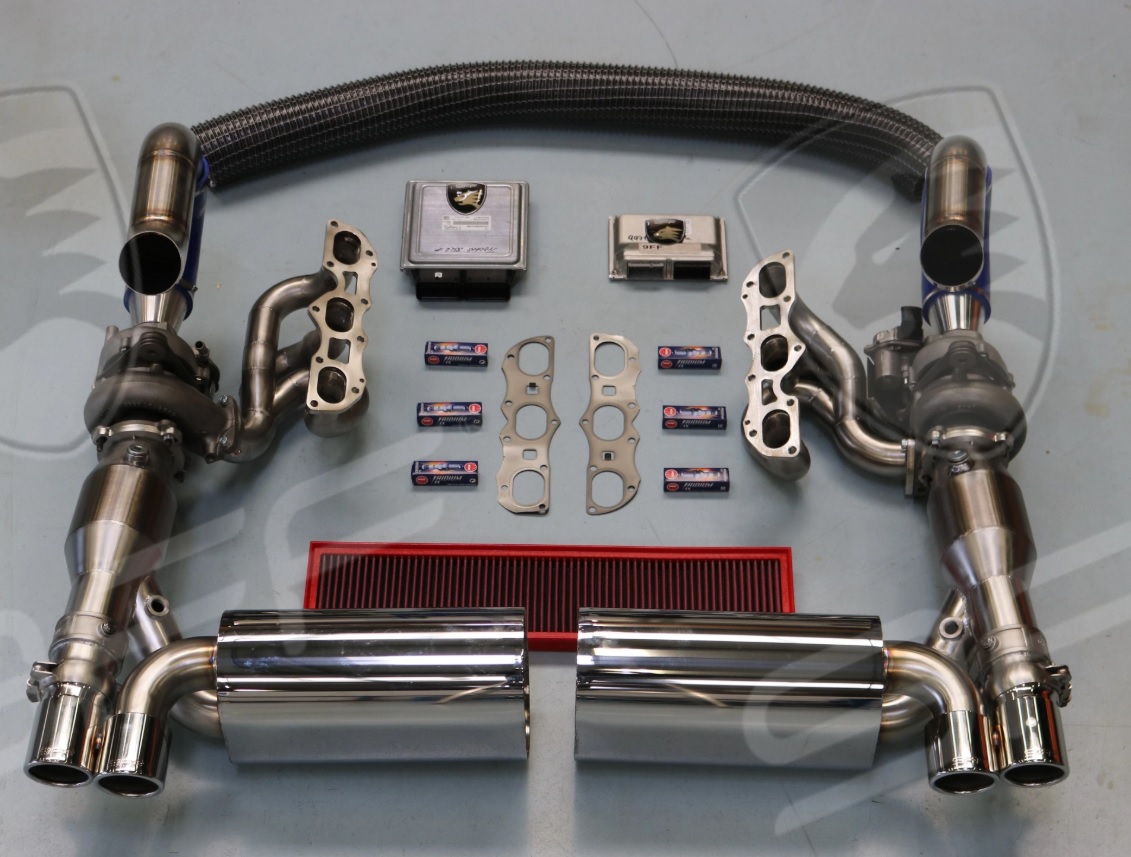 Да, ако искате вашето 991 Turbo S да е с 1000 к.с. от 9ff ще ви вземат 181 хил. лева и ще им трябват 40 дни да сменят всичко необходимо. Под всичко необходимо се има предвид разработени от 9ff турбокомпресори, всмукателна и изпускателна системи, усилени биели и съединител, по-голям интеркулер, катализатори (Euro6) и куп други неща като тези отдолу и отгоре.