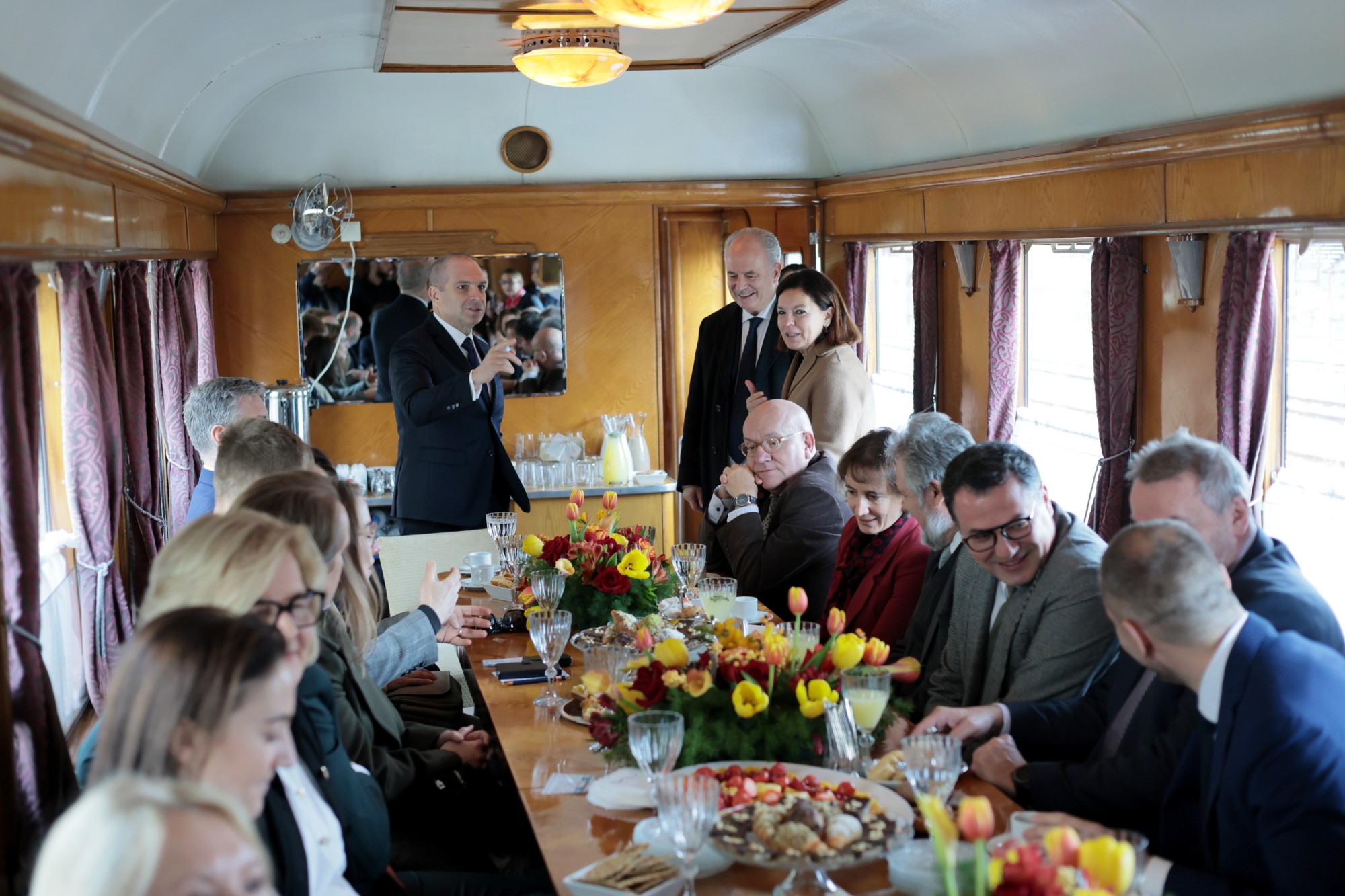 Специално за подписването с царския ретро влак “Корона експрес” до Гюешево пътуваха много високопоставени гости, сред които посланици на държавите от ЕС и НАТО.