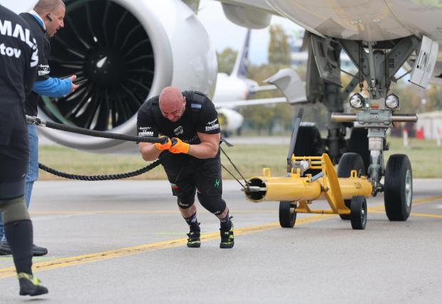 Дърпането на автобуси и самолети е сравнително популярна дисциплина в състезанията на най-силните тежкоатлети в света. Видеото с Еди Хол, който тегли самолет, си остава класика в жанра, но трябва да се отбележи, че той тегли 20-тонна машина – два пъти по-лека от българския Airbus. Не сме специалисти в областта, но бърза проверка на световните шампионати на най-силните хора на планетата показва, че досега не е теглен самолет с маса над 30 тона.