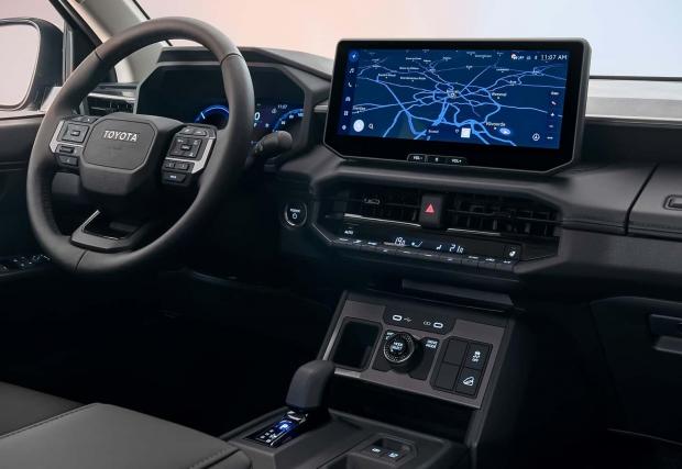 Новият Hilux въвежда по-семпло табло с до 12,3-инчов цифров приборен панел и централен мултимедиен екран (до 12,3”), групирани офроуд контроли и свързани услуги през приложението MyToyota, включително дистанционни функции и телеметрия за фирмени автопаркове. Пакетът Toyota Safety Sense е допълнен с Low Speed Acceleration Suppression, Proactive Driving Assist и Emergency Driving Stop, а нови системи като Blind Spot Monitor и Safe Exit Assist са налични според нивото на оборудване.