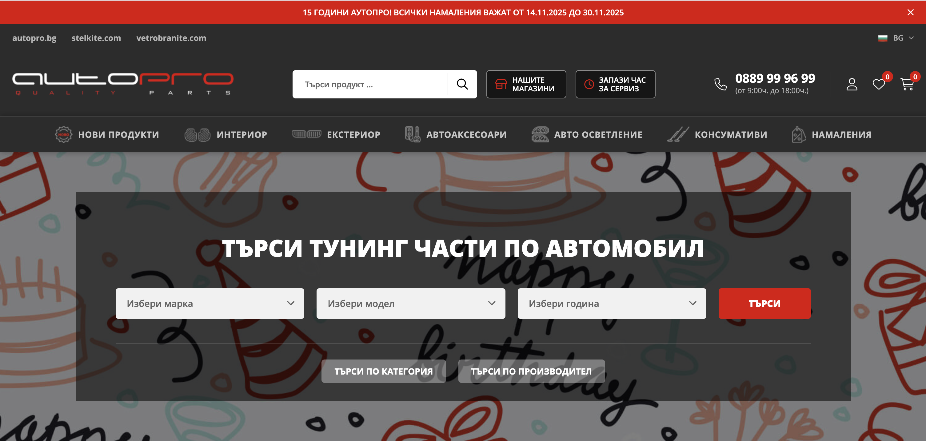 Гледайте видеото, обещаваме да ви бъде интересно. За нас процесът бе наистина такъв и се радваме, че успяхме да го проследим отблизо. Благодарим на AutoPro.bg за поканата и им честитим 15-тия рожден ден! Техните празнични офертни може да намерите, като кликнете на скрийншота от сайта им.