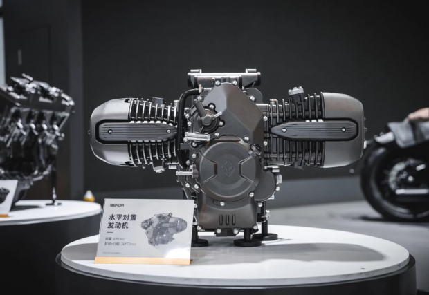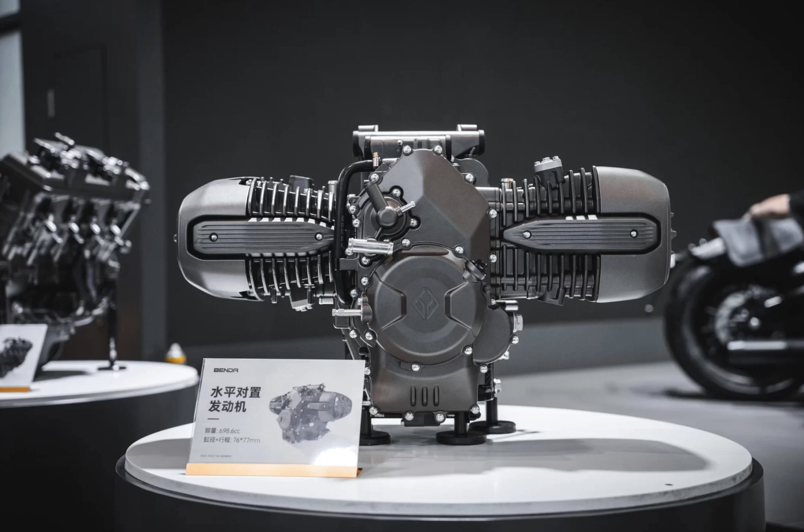 На споменатото в началото изложение CIMAMotor 2025 Benda показа още няколко любопитни агрегата. Марката демонстрира 550-кубиков 4-редови двигател, 700-кубиков боксер (на снимклата долу), както и 1700-кубиков 6-цил. редови мотор.
