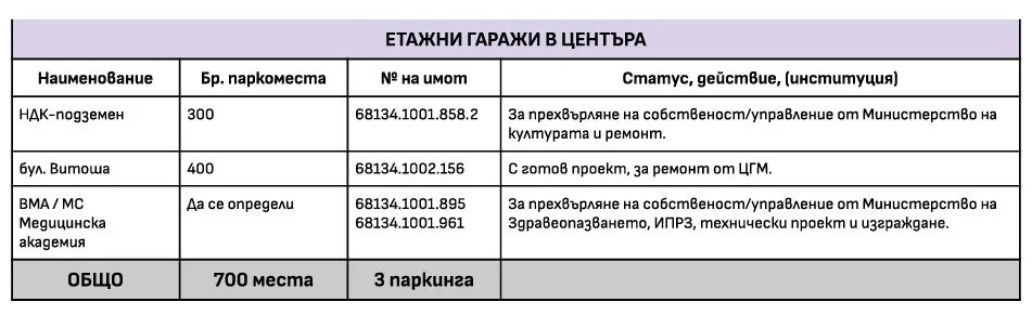 Три от многоетажните паркинги ще са в центъра – под НДК, под бул. “Витоша” и при ВМА.