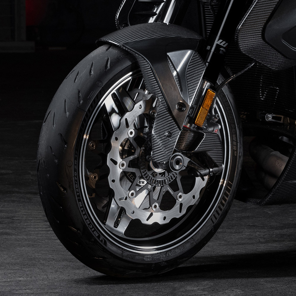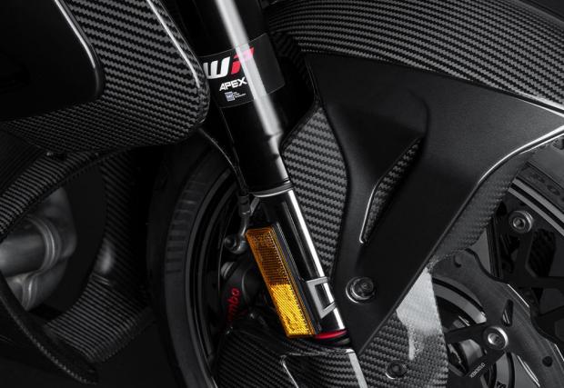 Не, че последният показател е особено важен при моторите, още повече при такова лимитирано изделие. Тук акценти са екзклузивността и различната визия. Макар, че все пак има и някои технически промени, като например смяната на спирачната система от Stylema с 4-бутални апарати HyPure отпред, и двете на Brembo. Полу-активното окачване WP Apex е като на KTM 1390 Super Duke R Evo.