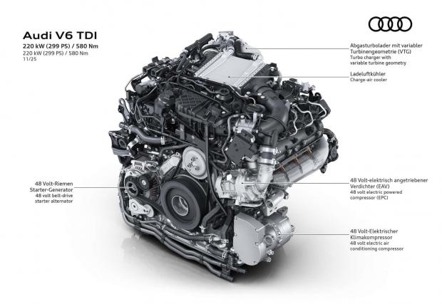 Въпреки новите технологии, това не е изцяло нов агрегат, а поредна еволюция на добре познатия V6 EA897, появил се за пръв път още през 2010 г. и използван в различни модели на Volkswagen Group, включително в някои Porsche-та, преди марката от Цуфенхаузен да се откаже от дизела след скандала с манипулираните емисии. Audi твърди, че актуалният EA897evo4 е най-чистият до момента и подчертава, че може да работи и с HVO – хидротретиран растителен дизел, произвеждан от използвано олио и аграрни отпадъци, който намалява CO2 емисиите с до 95% спрямо конвенционалното дизелово гориво.