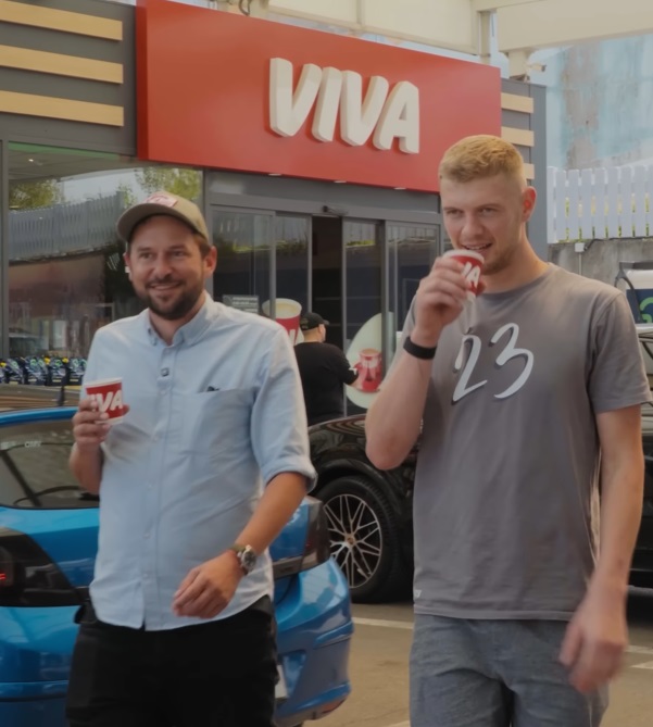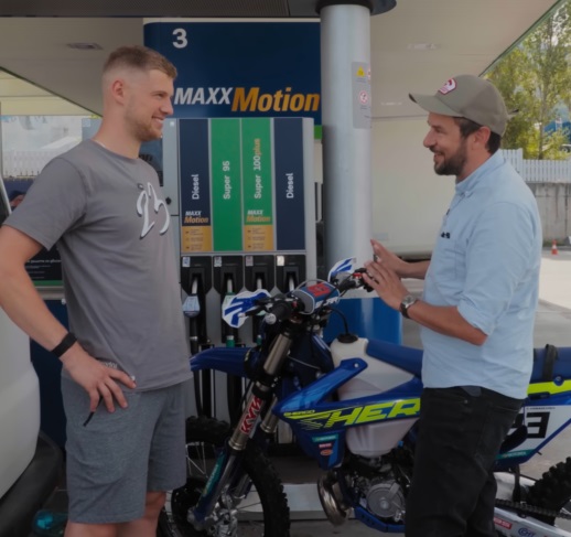 И с кафе VIVA, което пихме преди да се качим на верния бял бус, който е дизелов и се движи на MaxxMotion Diesel, а „любимата“ на Тедо, която се вози отзад - 300 SE XTREM, „се храни“ със Super 100 plus. А междувременно, броени часове преди да пуснем видеото, Теодор обяви, че договорът му със Sherco е удължен! Браво!