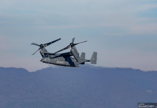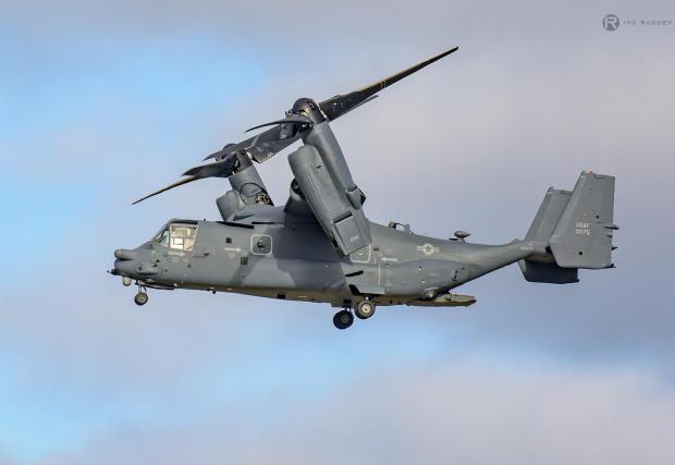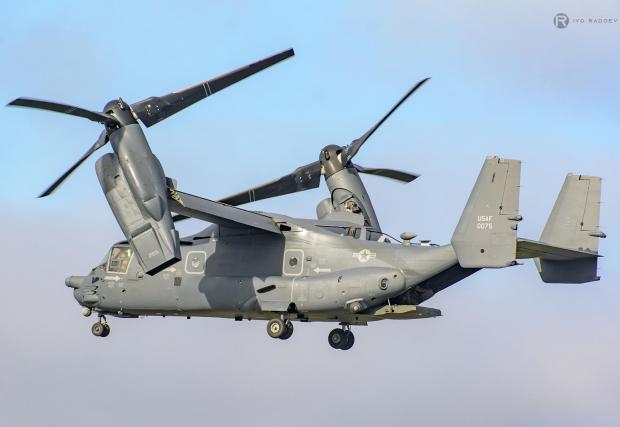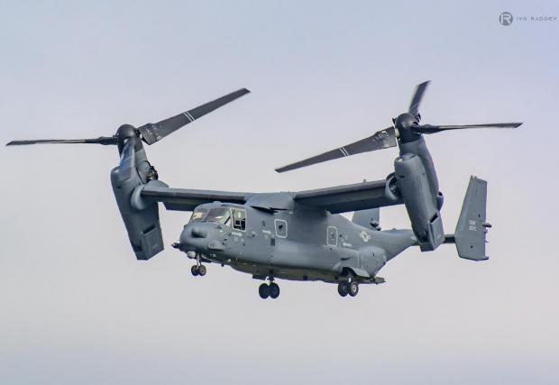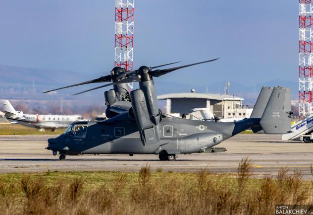 Авиоспотърите на летище “Васил Левски” засякоха един от най-странните военни самолети в света. В неделя (14 декември 2025) Bell Boeing CV-22B Osprey спря у нас само за презареждане, но очаквано предизвика интерес. Самолетът е на американските военновъздушни сили и е един от малкото в света, които позволяват както хоризонтално, така и вертикално кацане и излитане. Проектиран е да съчетава функционалността на хеликоптер и самолет. Това става с помощта на завъртащи се на 98 градуса двигатели.