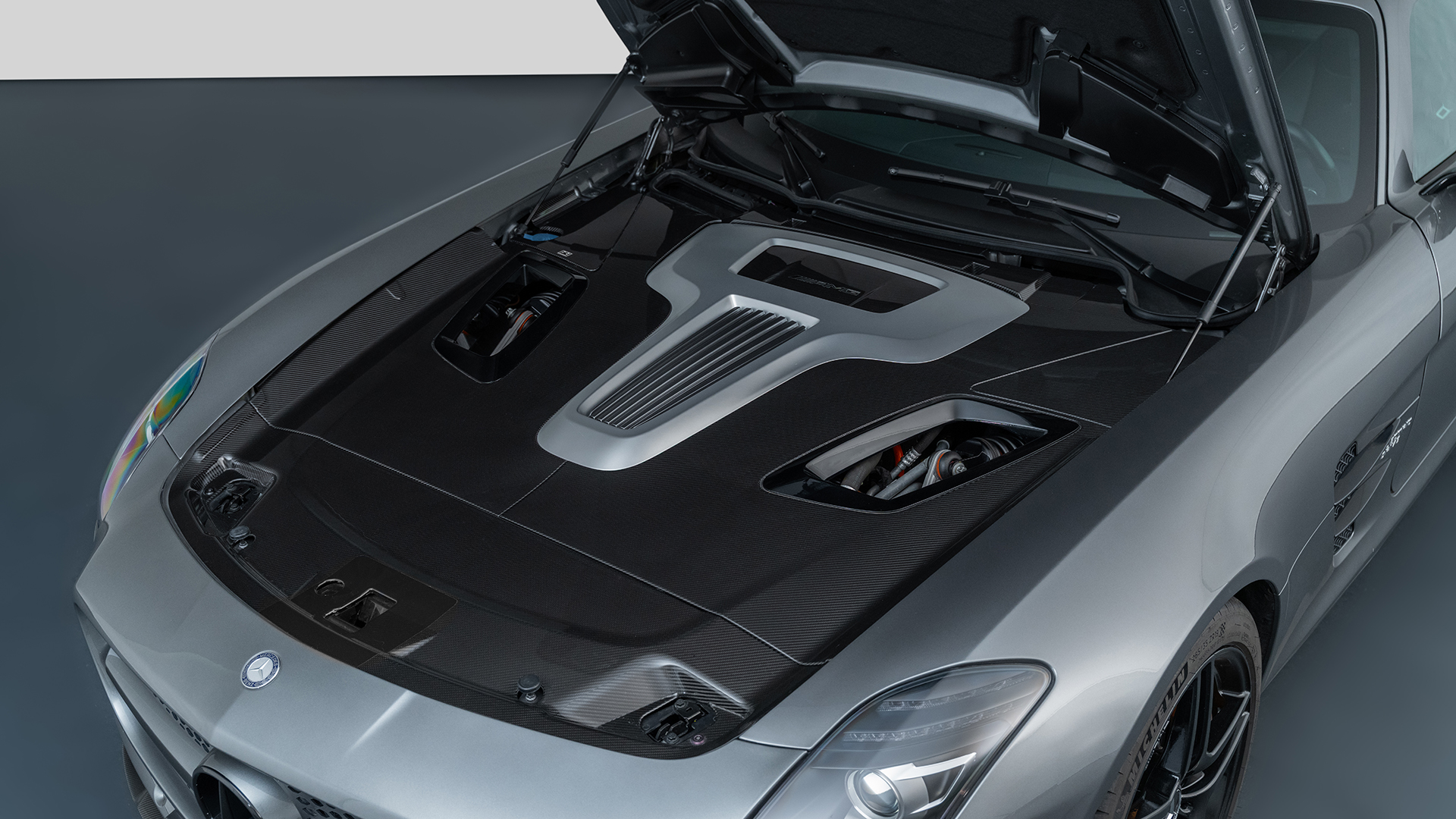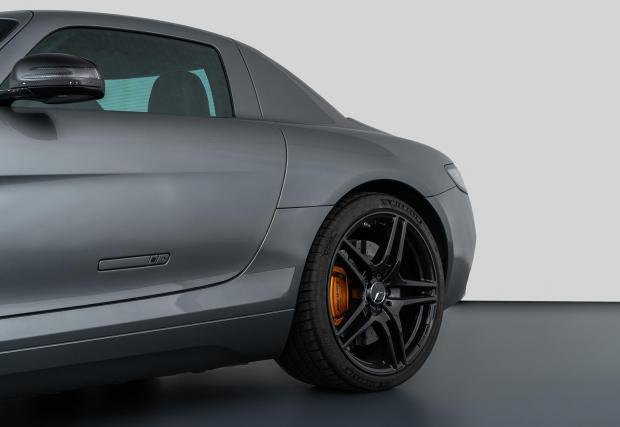 Предното окачване например, поради наличие на ел. мотори и там (стандартният SLS е винаги само със задно задвижване), се е наложило да бъде тотално променено. Тук е с т.. „пушрод“ система, позната от моторните спортове.