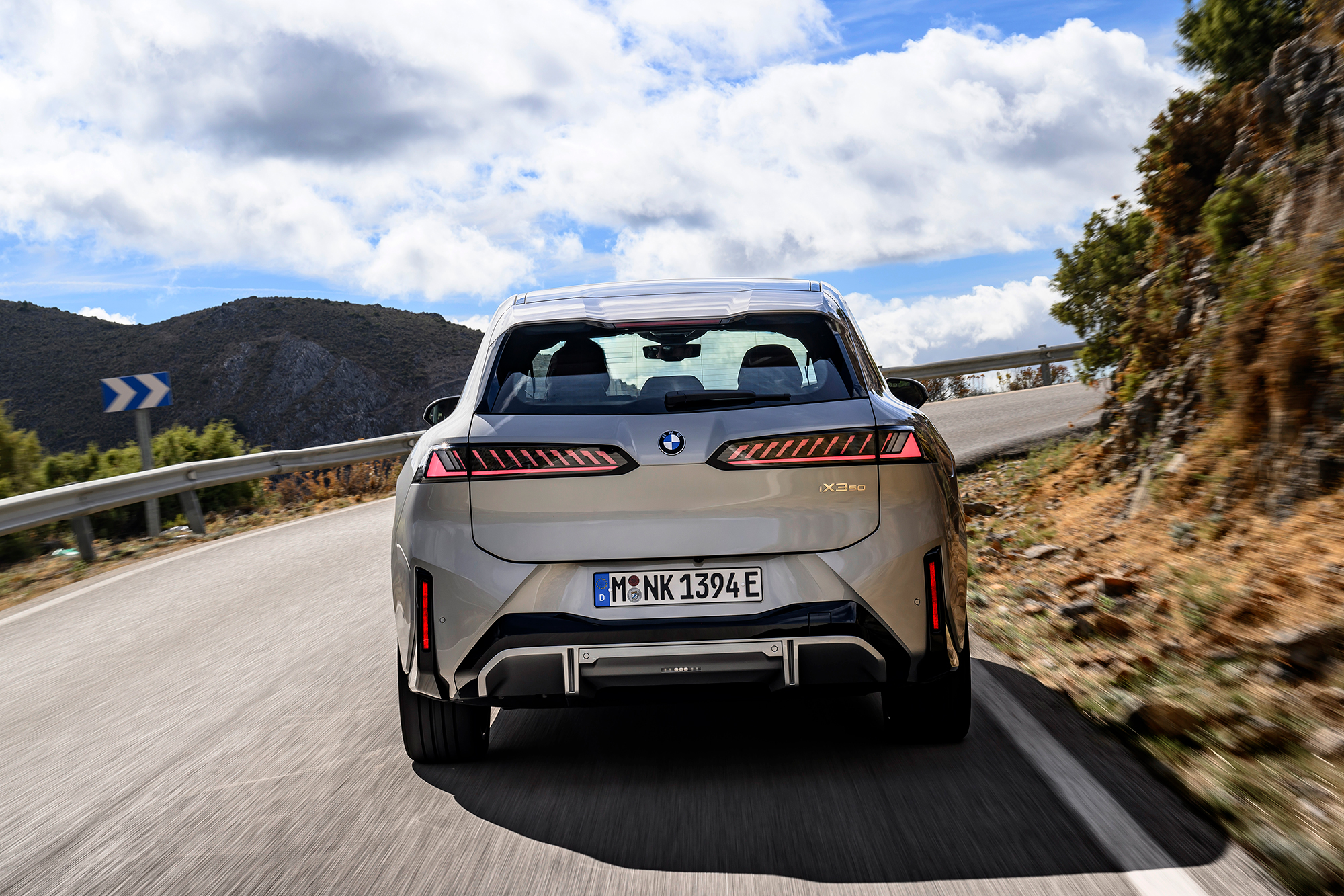 Задвижване. Много промени и тук. Моделът дебютира само в една единствена версия iX3 50 xDrive, с два мотора – асинхронен отпред, със 167 к.с. и 225 Нм и синхронен отзад – още 326 коня и 435 Нм. Общо разполагате с 469 к.с. и 645 Нм, които са доста повече от 286-те коня на предишното iX3, макар че прякото сравнение на двата модела не е особено коректно, поради големите новости при най-новото 6-то поколение eDrive задвижване. Въпросните ел. мотори са собствена разработка на BMW и се сглобяват в Грац, Австрия, в общ корпус с управляващата електроника и предавателната система, което ги прави по-леки отколкото ако не бяха обединени по такъв начин. Самата батерия не може да се нарече лека - около 570 кг., макар, че конструкцията ѝ е интересна и би следвало да е спестила малко от маса, защото клетките не са обединени в няколко модула, а са поместени директно в метален корпус, който реално е конструктивен елемент, под/дъно на автомобила. Представете си, че седалките са завинтени директно за обшивката на батерията, защото е точно така.