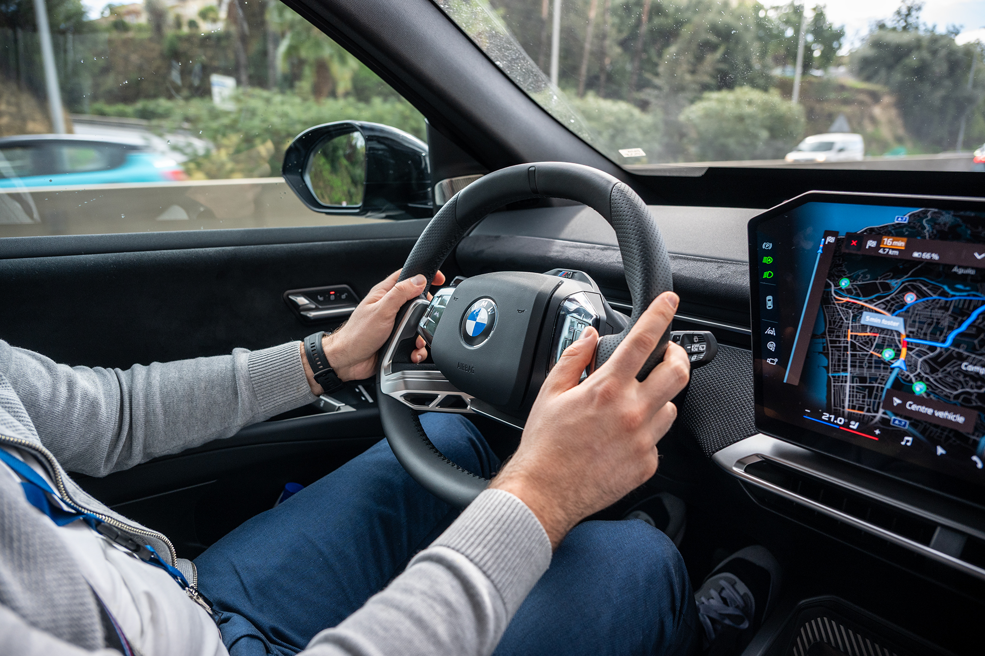 iX3 е и първото BMW с 800-волтова архитектура, обещаваща много по-бързо зареждане. Максималната му мощност е 400 кВт или над два пъти по-голяма от максималната на iX (195 кВт). С нея за 10 мин. „наливате“ достатъчно ток за 309-372 км пробег, казват от марката, за 21 мин. зареждате от 10-80%, а с 22-киловатов “wallbox” ще ви трябват 5 ч. и 45 мин. за 0-100%. Доколко тези твърдения отговарят на реалността? Ще мога да кажа, когато колата дойде в България и я карам няколко дни и ако въобще намеря 400-киловатова станция. По време на теста в Испания не ми се наложи да зареждам, a какъв разход и пробег ми даде, ще разберете в следващия раздел.