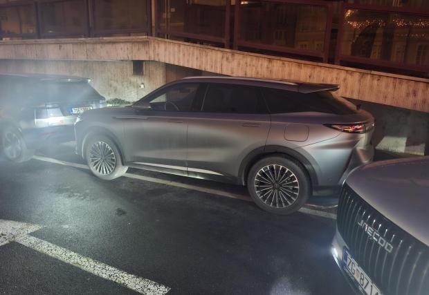 Omoda 9 SHS излиза в бял външен цвят, но ако го искате сив или черен ще трябва да похарчите още 958 лв. (490 евро). Матовото изпълнение, каквото налазихме в Будапеща, е три пъти по-скъпо – 3109 лв. (1590 евро).