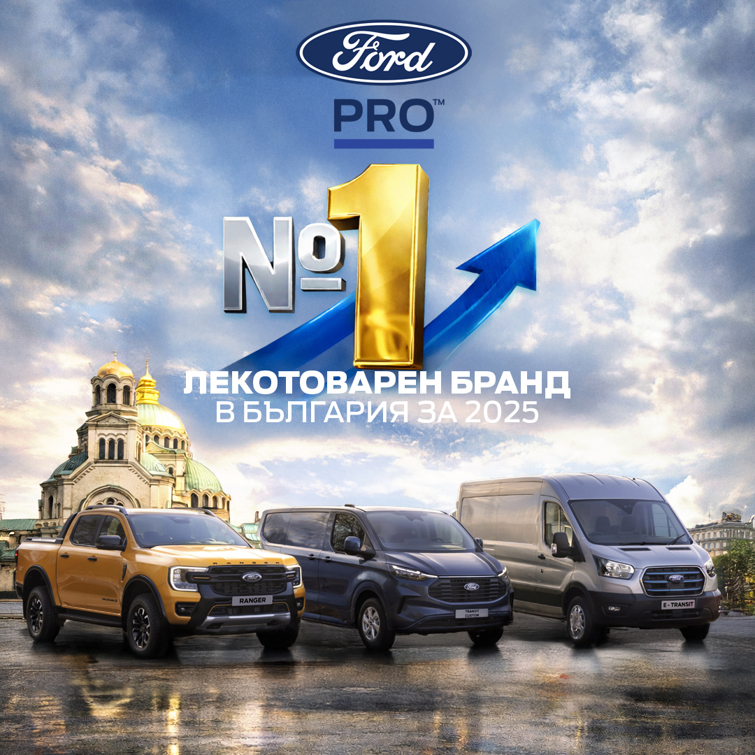 Ford затвърждава лидерската си позиция и се нарежда на първо място по продажби на лекотоварни автомобили в България за 2025 година. Благодарение на изцяло обновената и разширена лекотоварна гама марката извървя пътя до абсолютния №1 на пазара.