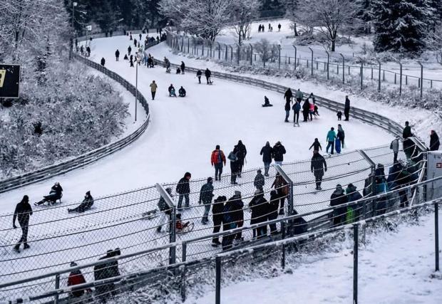 Всъщност “Нюрбургринг” съвсем обичайно е затворен през зимните месеци. Пистата се намира в планината Айфел и въпреки сравнително ниската надморска височина (500 метра), снегът се задържа поне до втората половина на февруари. Първият ден за свободно каране (на коли) е 7 март 2026!