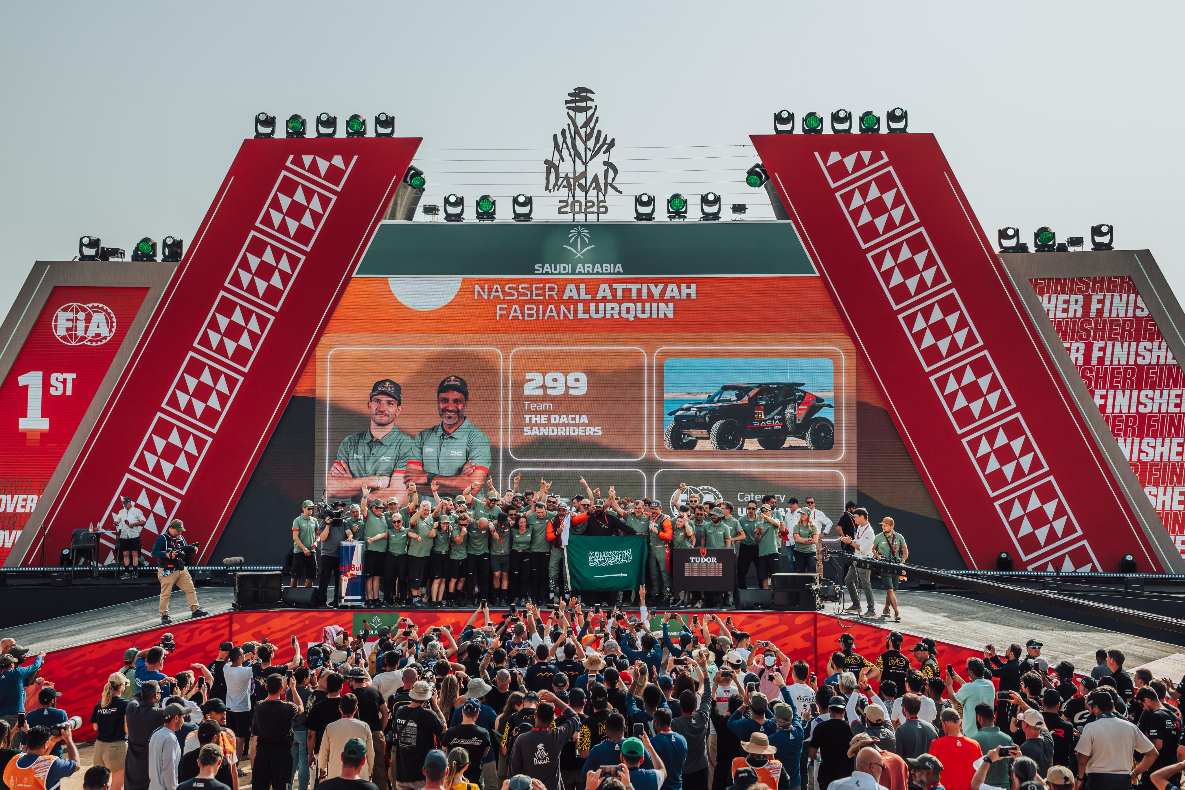 Отборът на Dacia Sandriders спечели 48-тото издание на рали "Дакар", най-трудното състезание в международния автомобилен спорт, благодарение на Насер Ал-Атия и Фабиан Люркен, които постигнаха запомняща се и особено впечатляваща победа с преднина от почти 10 минути. Изключително постижение само при второто си участие в състезанието от Световния рали-рейд шампионат на FIA, Dacia Sandriders имаше още един повод за празник, когато другите три екипажа достигнаха финала днес следобед.
