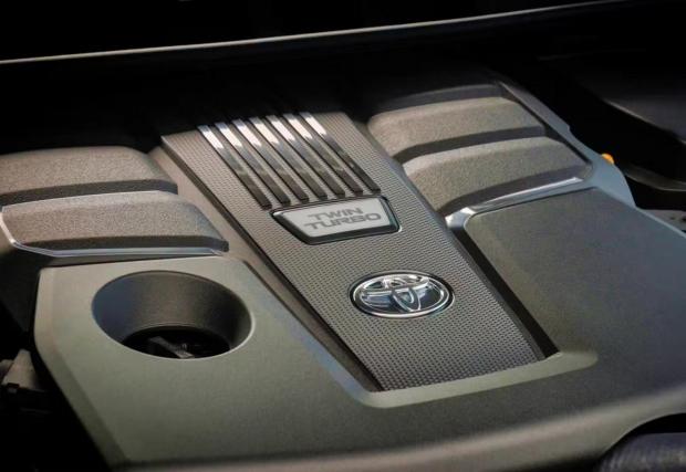 Електромоторът е разположен между двигателя и 10-степенната автоматична трансмисия и подпомага потеглянето и ускорението, както и рекуперацията при спиране. При скорости под 30 км/ч автомобилът може да се движи само на ток, като преминаването между режимите е автоматично. Енергията се съхранява в никел-металхидридна батерия, а Toyota твърди, че реакцията на газта е подобрена с около 40% спрямо Land Cruiser 300 с 3,3-литров битурбо двигател.