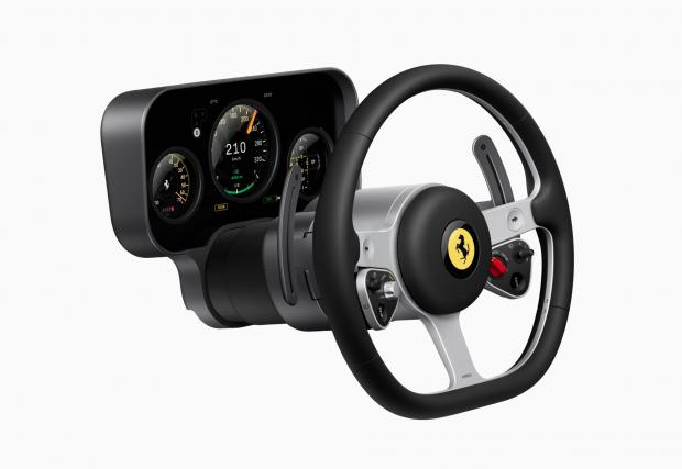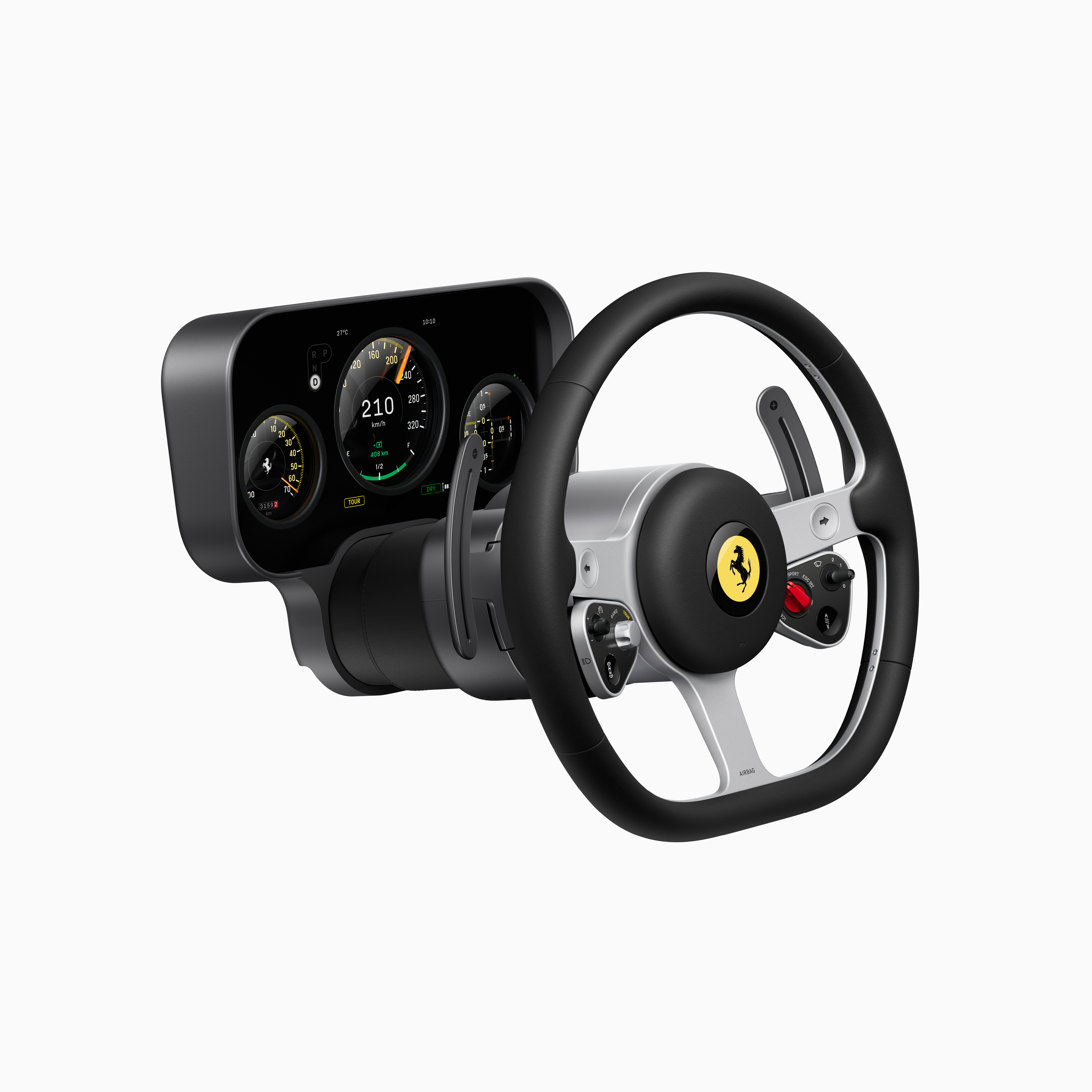 Панелът зад волана много прилича на табло с аналогови уреди, вдъхновени както от класическите Ferrari-та с техните прибори Veglia и Jaeger, така и от авиацията и часовникарството. Основните му компоненти са два дисплея поставени в различни равнини, OLED панели, за разработката на които са полагали специални усилия хора от Samsung. Реално трите кръгли отвора в горния дисплей, обрамчени с бордове от анодизиран алуминий, отварят „поглед“ към долния дисплей.
