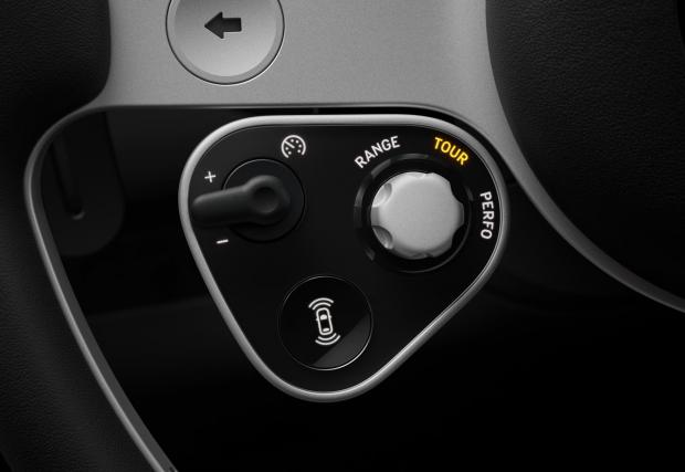 Така са формирани изображенията в нея и така се е получил леко матовия завършек замаскиращ пръстовите отпечатъци. На специално магнетизирано място в нея се поставя ключа (паралелепипедчето с емблемата), след което се случва драматична трансформация – при потъване на модула в гнездото той се обезцветява, почернява, а жълтият му цвят мигрира в лостчето за избор на режими на движение (PRND). Яко.