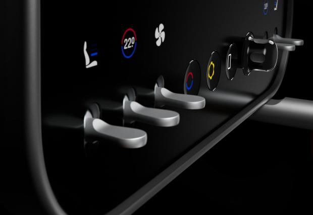 Споменатият вече лаунч контрол се активира от панел пред централното огледало, в които са поместени и алуминиеви превключватели в стил ЦК ключета, каквито има и на централния дисплей. Централната конзола пък е направена от Gorilla Glass с много интересна технология, чрез която е надупчена - 13 000 микро отвора, през които е вкарано специално мастило.