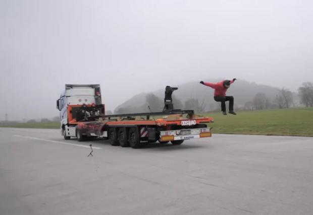 Не правете това вкъщи: Изстреляха човек от камион с 80 км/ч (Видео)