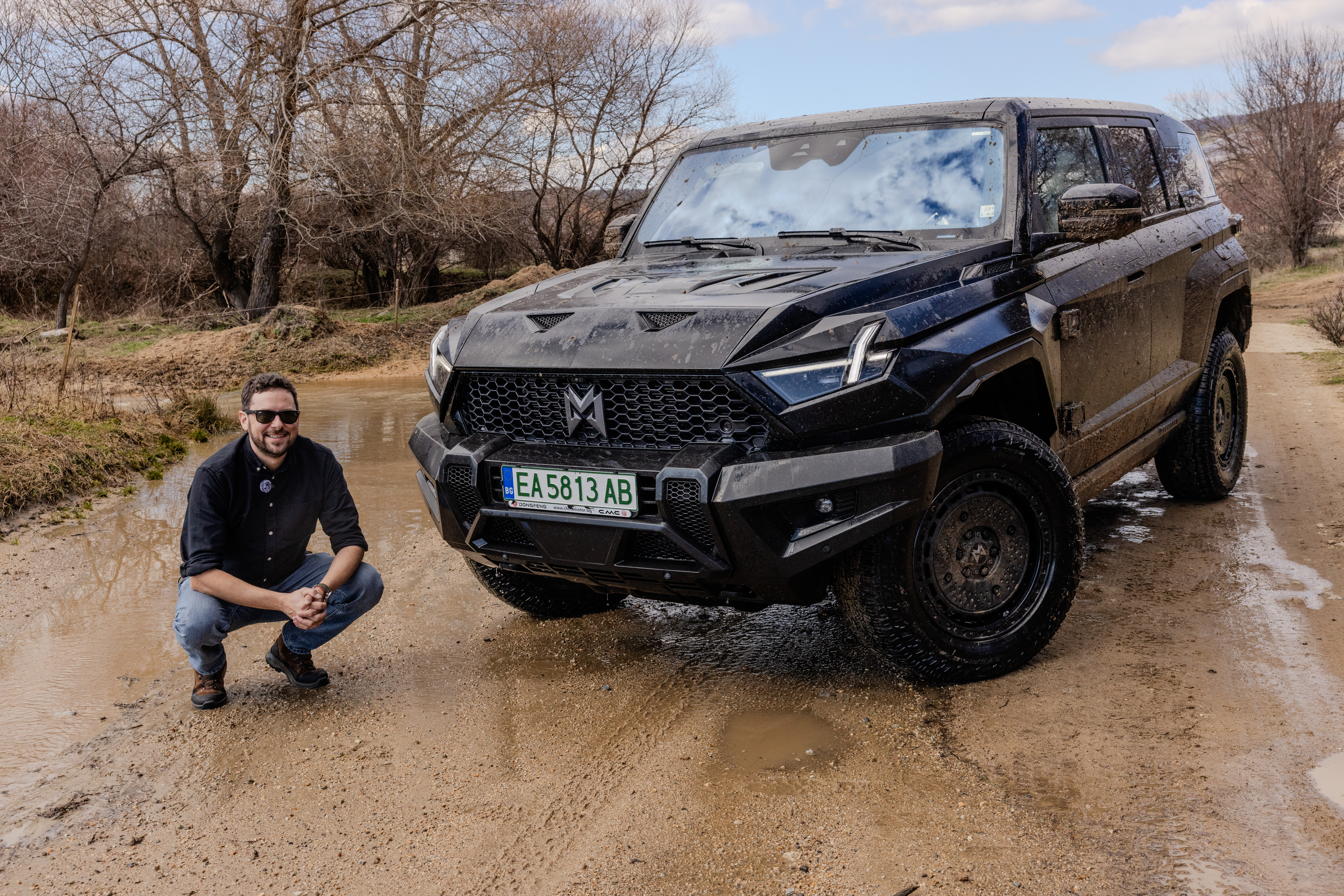Интересно ми е да карам колата и на асфалт през уикенд, за да мога да придобия пълна представа за нея и да ви я покажем в детайлно видео. Засега обаче впечатленията са ми са изключително положителни. Цените? По-базовият вариант започва от 63 хил. евро, а луксозният от 74, като „Чайна Мотор Къмпани“ дава гаранция 7 години или 150 хил. км. А на снимката долу съм до чисто електрическия MHERO 1 с над хиляда коня, който също „разходихме“ в калта.