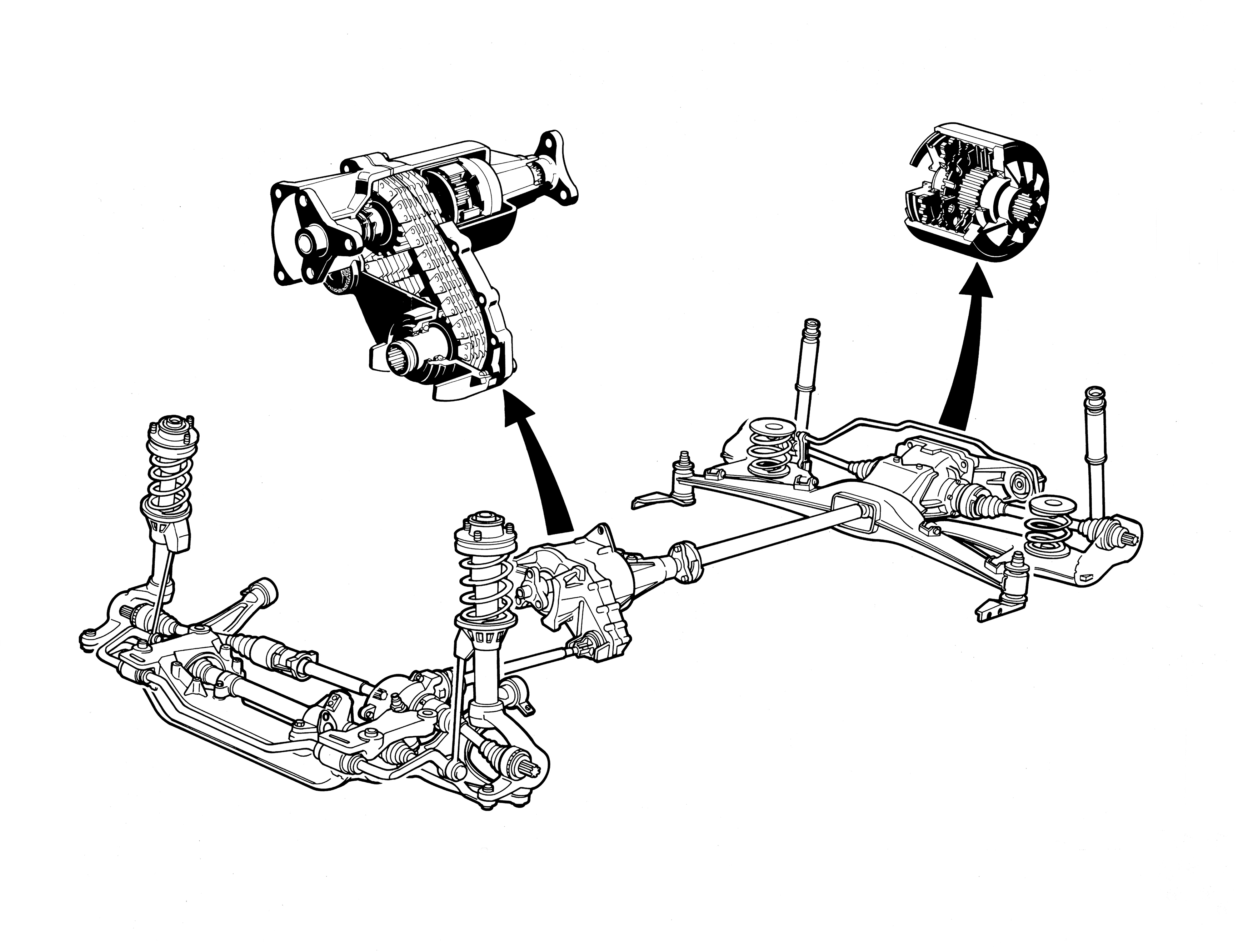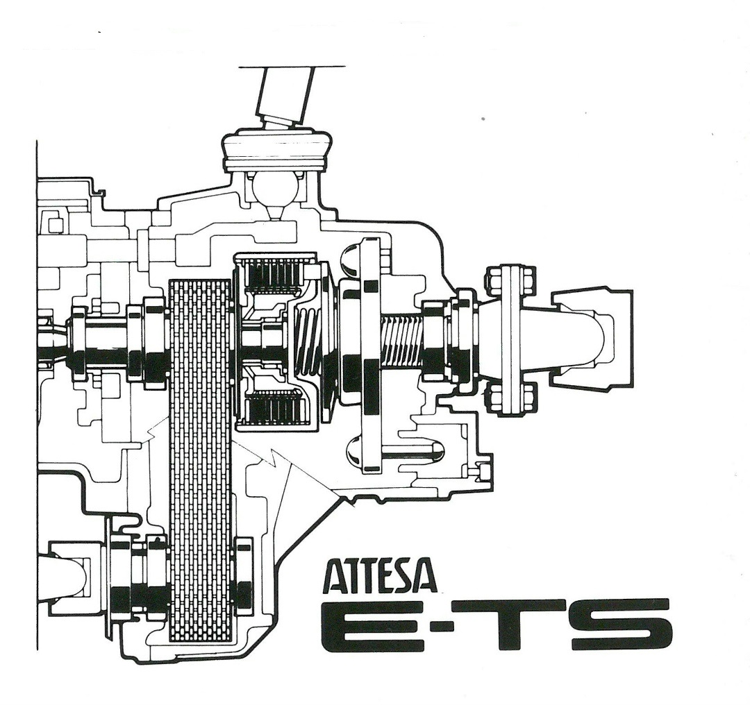 Тук е моментът да отбележим че решения с междуосев съединител от онези времена – и тук включвам и това на Porsche 959 – нямаха нищо общо с произвежданите в големи мащаби модерни конструкции, след създаването на съвременния вариант на тази технология от компанията Haldex. Революционна по своята същност бе системата ATTESA Е-TS (Electronic Torque Split) за спортните автомобили на Nissan с надлъжна компановка и предно разположение на двигателя.