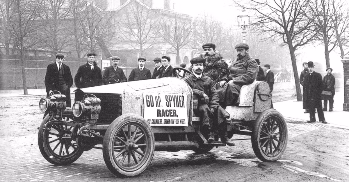 В наши дни подобно решение не се използва, поради същите тези причини и въпреки възможността да се намалят до минимум загубите с интегрирането на електрическия мотор в колелото. Не минава много време се появява и първопроходецът Spyker, на практика първият автомобил с механична система за задвижване на четирите колела. Известен като „автомобилът с трите първи“, освен със системата си за двойно предаване, създаденият от холандската компания е първият автомобил с шестцилиндров двигател (огромен 8,8-литров с отделни глави) и първият със система с четири спирачки на колелата (плюс спирачка на карданния вал) той се превръща в основа на всички леки автомобили с двойно предаване. Системата за задвижване на четирите колела на автомобила, както и на множество модели по-късно е фокусирана върху моторните спортове – Spyker 60 HP се състезава два пъти в тогавашните рали надпревари, от които единият път печели. Това прави автомобила на практика и първия 4 WD рали автомобил.