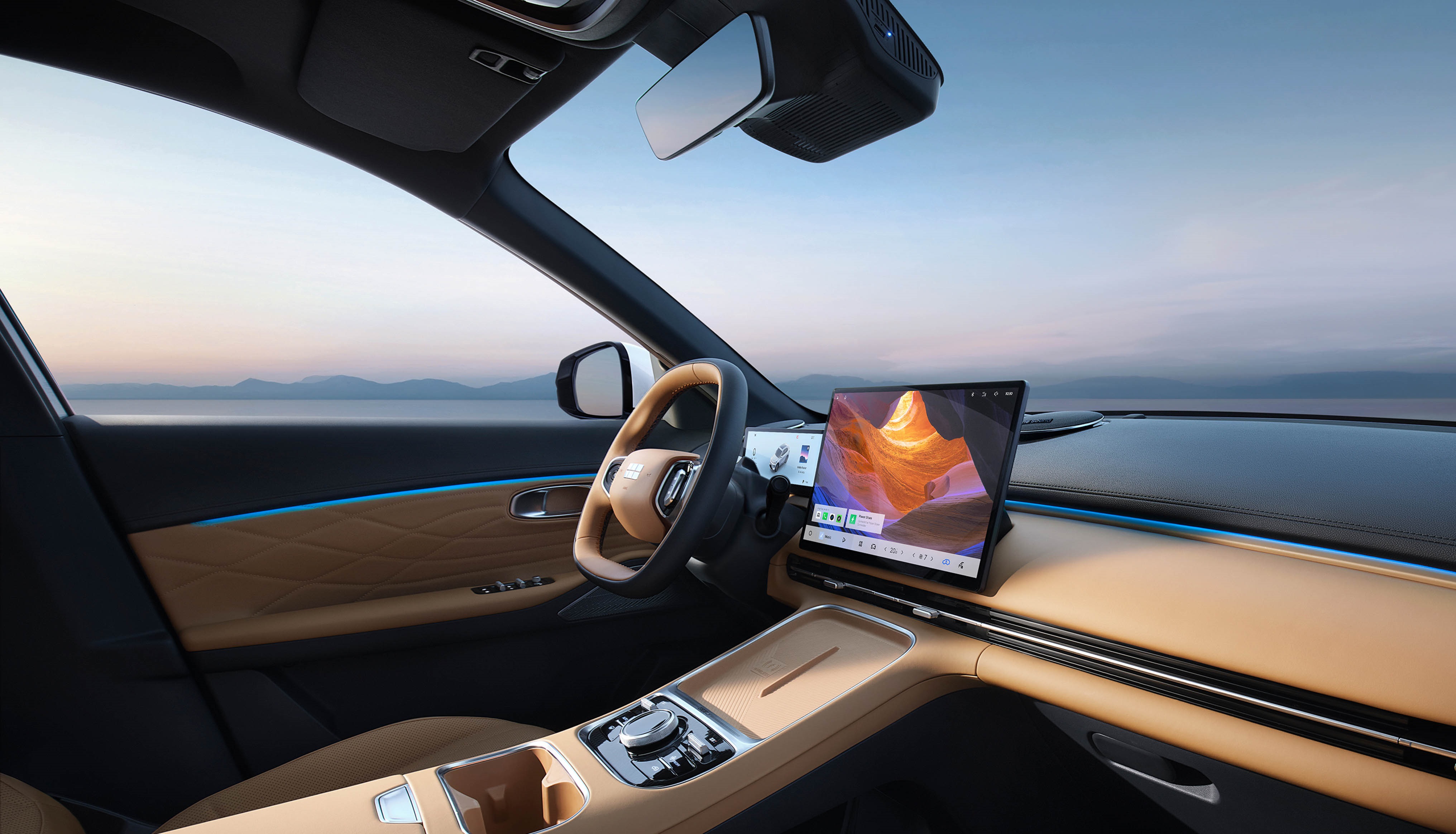 Технологичното оборудване също е сред силните страни на модела. Starray EM-i разполага с интелигентен кокпит Flyme Auto, който включва 10,2-инчов дигитален инструментален панел, 15,4-инчов централен дисплей и 13,8-инчов head-up дисплей. Системата поддържа OTA актуализации, а в пакета за безопасност влизат седем въздушни възглавници, включително централна между предните седалки, както и набор от асистиращи системи от ниво L2 ADAS. Сред тях са автономно аварийно спиране, адаптивен круз контрол, поддържане на лентата, следене на мъртвата зона и 360-градусова камера.