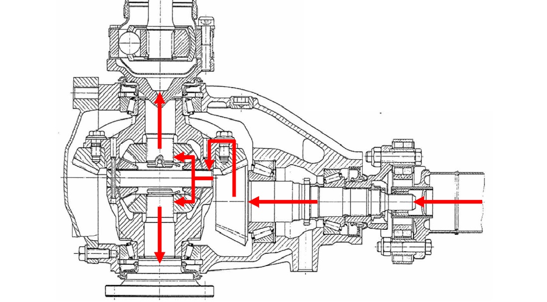 Има ясна причина за това при отворения диференциал – който, забележете, винаги предава един и същ въртящ към всяко от колелата (!) – външното на завоя колело да изминава по-дълъг път. В този случай диференциалът загубва своя баланс и „статичност“ и започва взаимно движение на отделните механизми в него един спрямо друг. Причината се корени във факта, че когато колелото на автомобила се движи в права посока гумата му среща определени съпротивителни сили. В завой към тях се добавят странични съпротивителни сили, стремящи да „усучат“ гумата. Тъй като кривата на колелата от външната страна на завоя е с по-голям диаметър (тоест по-близо като траектория до права от вътрешните), съпротивителните сили са по-малки и при прилагане на един и същ въртящ момент/сила то започва да изпреварва другото. Чиста физика…