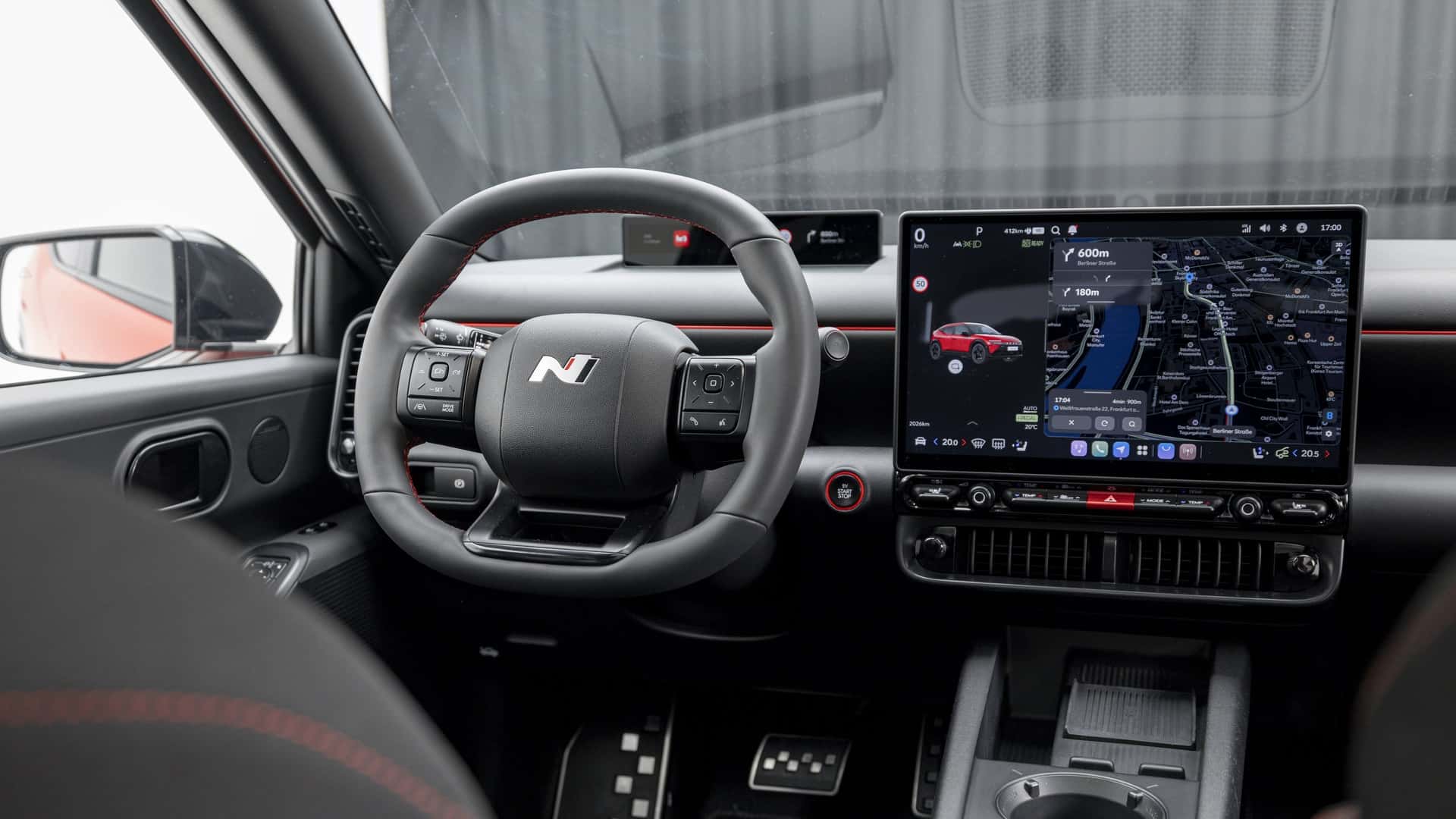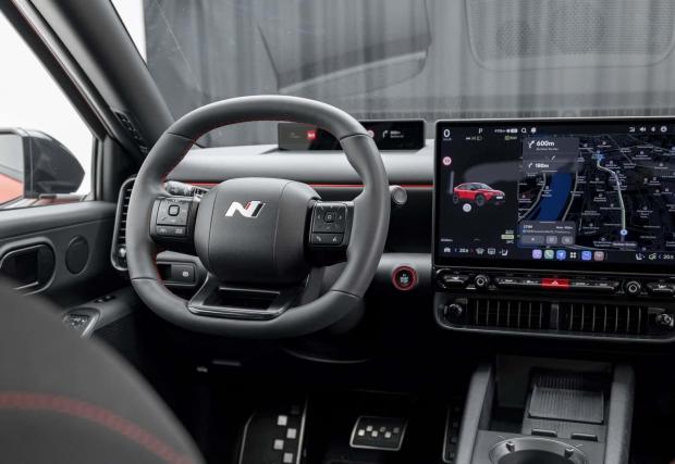 В интериора виждаме за първи път новата инфоразвлекателна система на Hyundai Pleos. Тя използва Android и идва с 12,9 или 14,6-инчов сензорен екран, в зависимост от нивото на оборудване. Хубавото при Pleos е, че съчетава сензорен екран с аналогови бутони за функциите на климатика и аудиото.