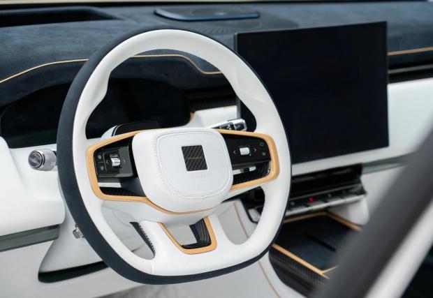 Екстериорът е получил също множество карбонови вложки, панели с „аеро“ елементи и 24-инчови ковани колела, както и четири ауспухови накрайника. За разлика от повечето познати у нас модели на Zeekr, 9X не е чисто електрически, а е плъгин хибрид, нуждаещ се и от тръби за изпускане на изгорелите газове.