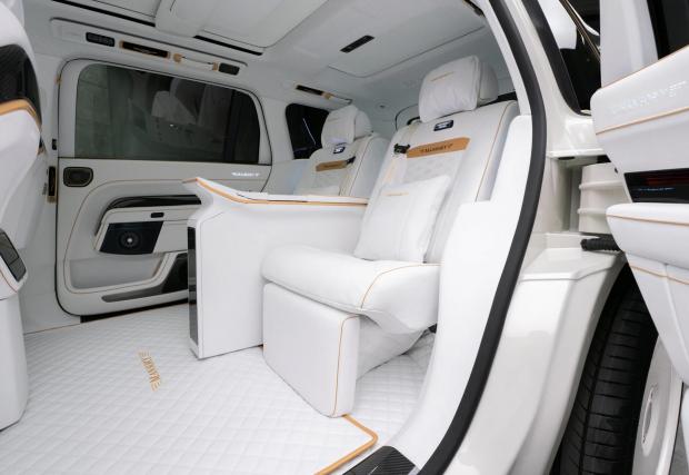 Интериорът? Също, както външността на колата, може да бъде поръчан както ви скимне. „В зависимост от изискванията на клиента, интериорът може да бъде надграден с отделни компоненти или напълно преработен. Като част от цялостната персонализация, всеки възможен елемент е тапициран с най-фината кожа.“